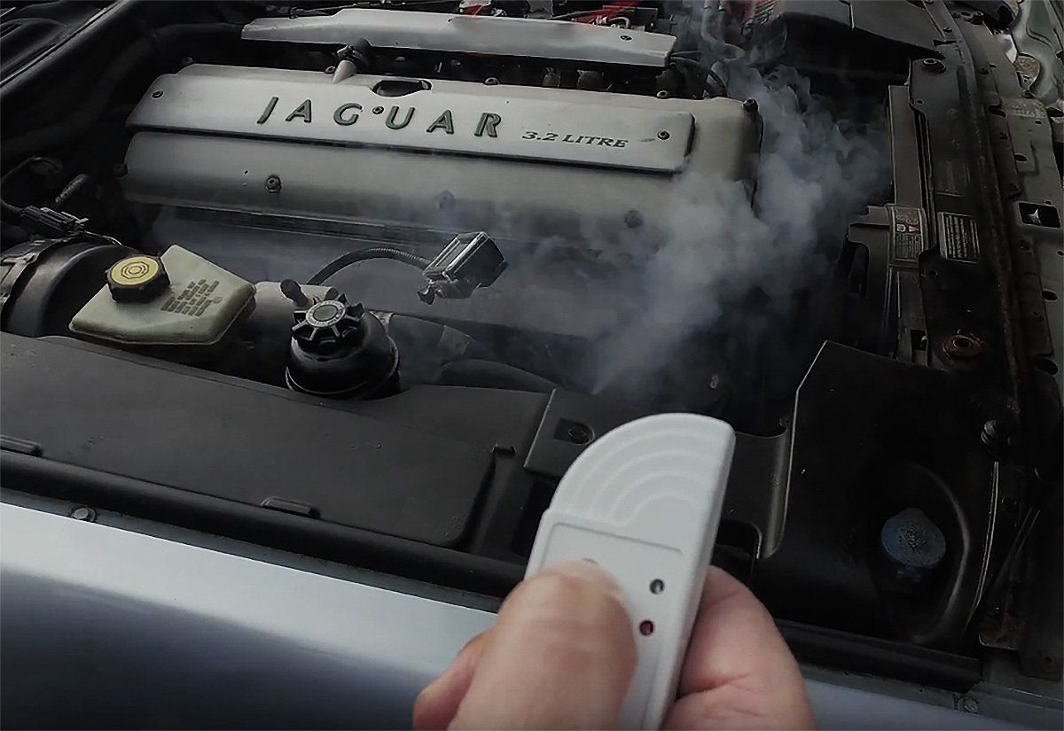 With a footprint of little more than a smartphone, the device is completely self-contained, with manual or wireless remote operation. Totally integrated battery and fog liquid cartridges with Radio frequency RX/TX remote control